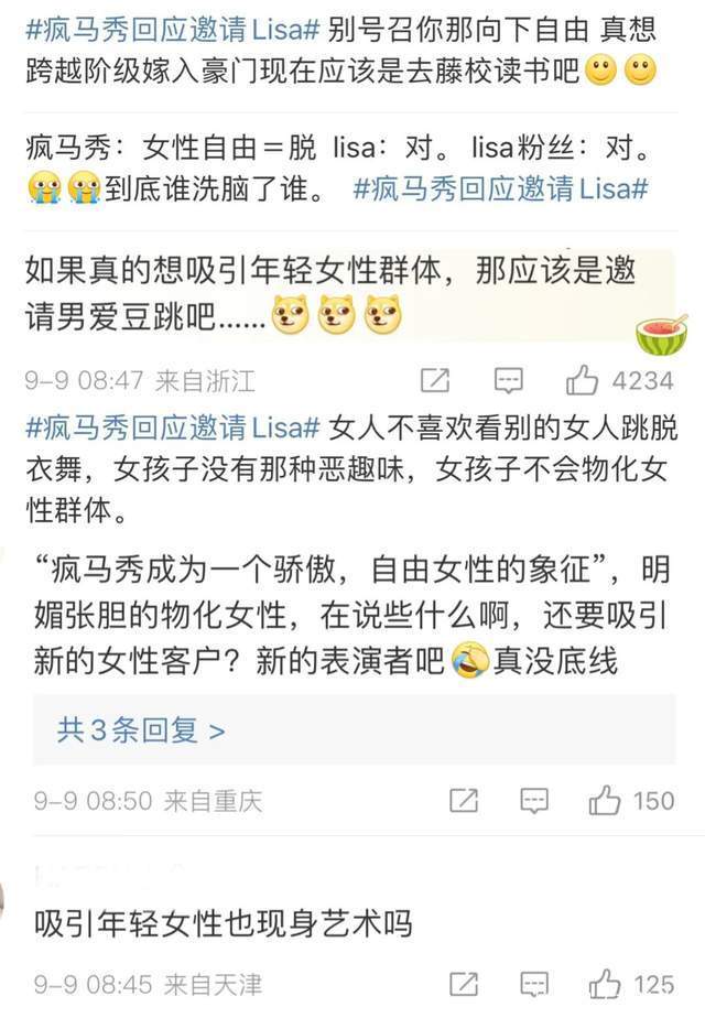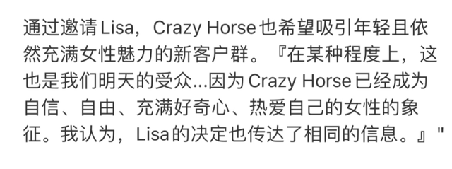 对此,疯马秀回话称,这个品牌照旧成为女性自信解放自负的象征。而且,Lisa加盟上演也能招引到其他年青女性更多温雅疯马秀。主持方觉得这碰巧是一举两得,Lisa不错尽情展现她的自信自负,主持方也能借着Lisa加多温雅。